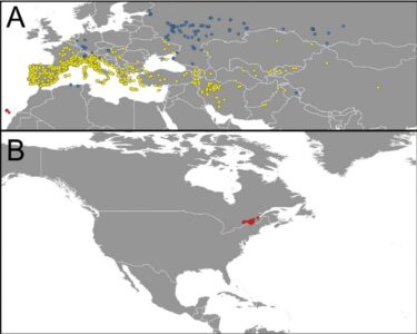 La distribución de A. florentinum ha cambiado notablemente en las últimas décadas, expandiéndose hacia el Norte de Europa y África. Además, esta especie ha sido observada en Norte América e India, donde ha sido probablemente introducida (Figura 2)